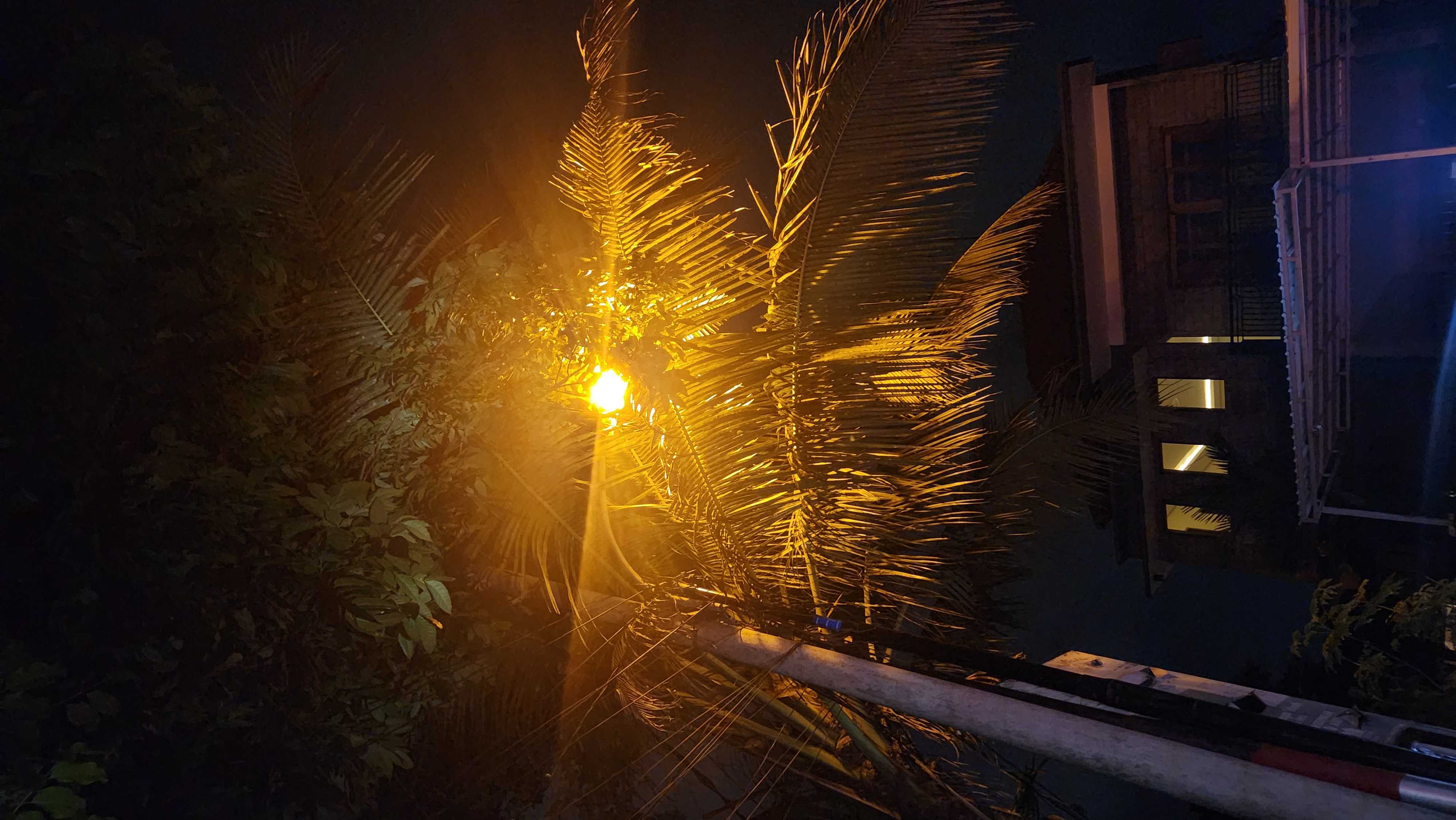 LPJ di depan SMA 8 dekat tembok SMP 12 Denpasar terhalang pohon kelapa, mohon bantuan petugas untuk pangkas pohon kelapa agar tidak menghalangi sinar LPJ